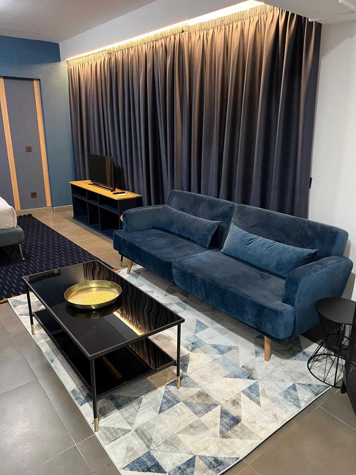 Amplitude and comfort in one space Enjoy an unparalleled stay in our Blue Suite of 40 m², a comfortable and functional space with capacity for up to three people. It has a double bed and a sofa bed, ideal for your rest. The suite includes a small office with microwave, refrigerator and kettle, as well as a welcome detail with infusions and coffee. For greater comfort, it has a private bathroom with shower, dressing room, and a large window that provides natural light and warmth. You will also find a hairdryer and iron, and