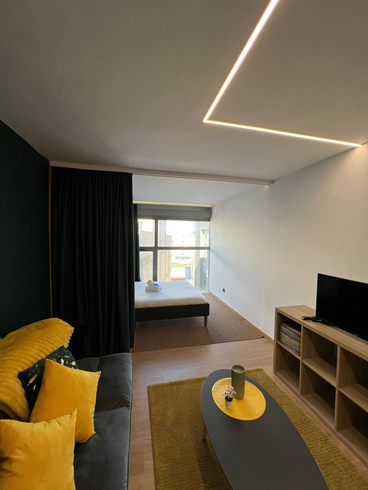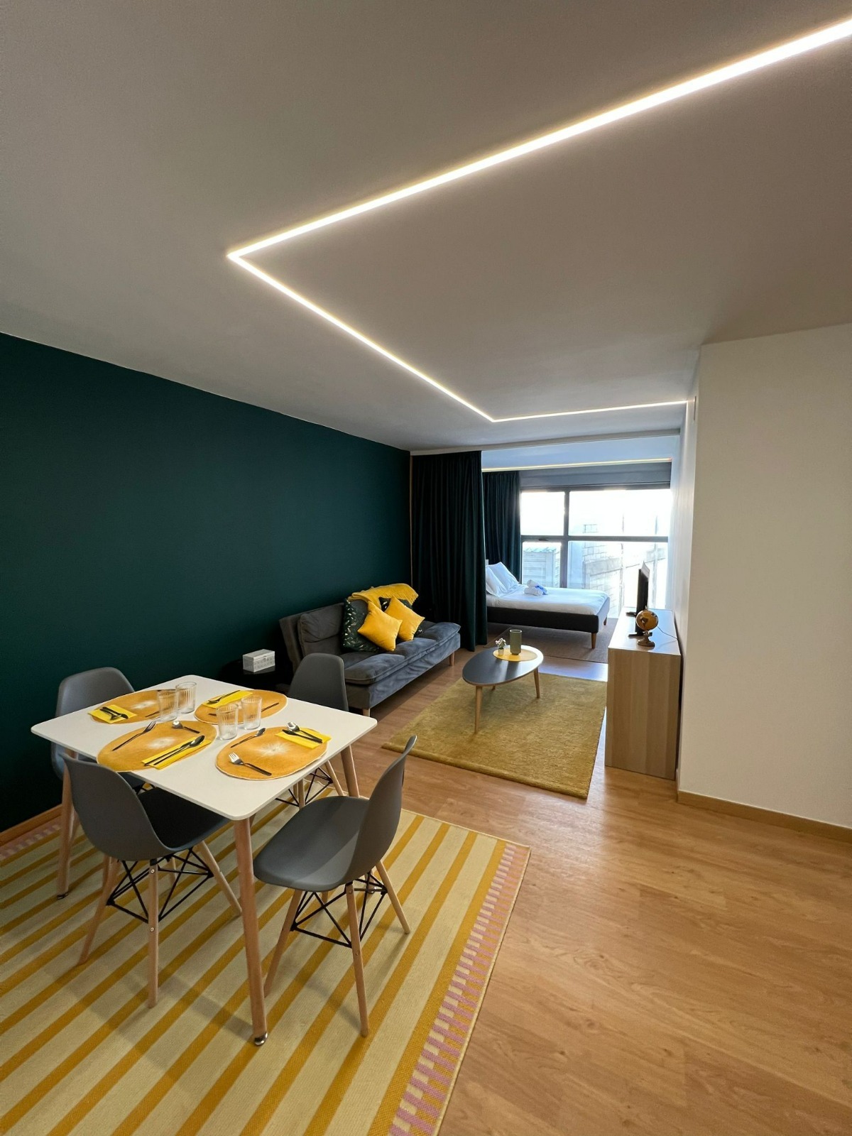 Comfort, privacy The Green Suite offers you comfortable and functional accommodation, ideal for a practical and welcoming stay. Equipped with a double bed and a sofa bed, this suite can comfortably accommodate up to three people. It has an office area with a microwave, refrigerator, and kettle, as well as a welcome detail with teas and coffee. The space includes a dressing room, private bathroom with shower, and a large window that brings in natural light and a sense of spaciousness. For your convenience, you will have a hairdryer and iron, and access to a zone