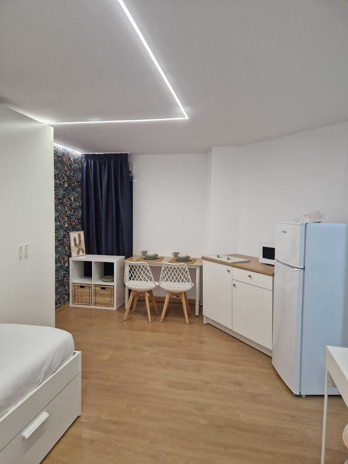 Comfort and functionality in one space Our White Suite of 21 m² is designed to offer you practical and cozy accommodation with all the integrated comforts. The suite features a double bed and a foldable single bed, perfect for hosting up to three people. It has an office equipped with a microwave, refrigerator, and kettle, as well as a welcome detail with teas and coffee. The space includes a private bathroom with a shower, and the entire suite has air conditioning and heating. For your convenience, a hairdryer will be provided.