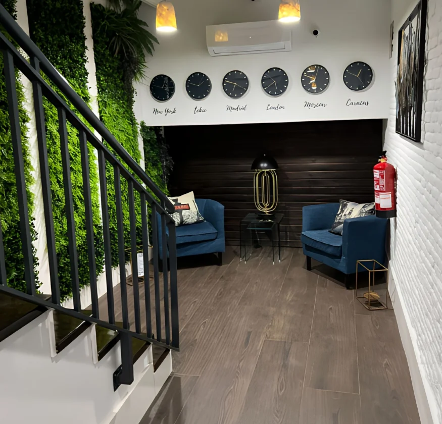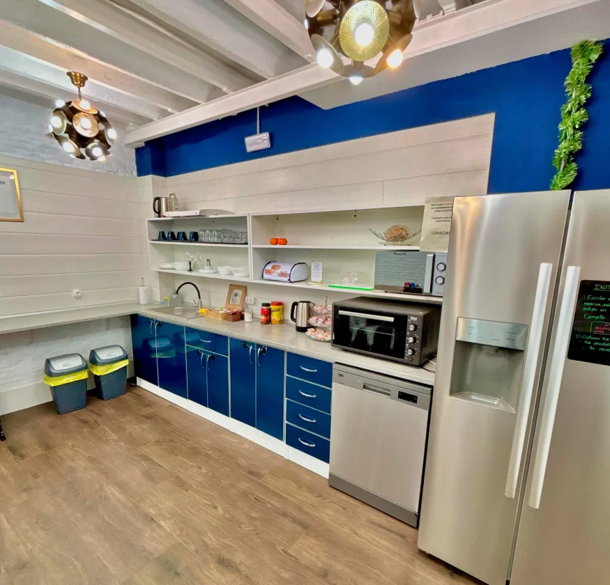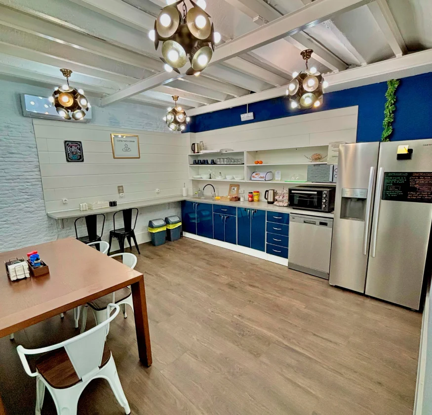 En Modular Rooms Madrid, nuestro equipo le recibe con calidez y atención personalizada. Disfrute de Coffee Tom’s Corner, equipado con microondas, frigorífico, lavavajillas y TV de 65” con streaming, donde podrá preparar comidas, relajarse o socializar. Detalles como café, té y mermeladas de cortesía hacen su estancia más cómoda y agradable.